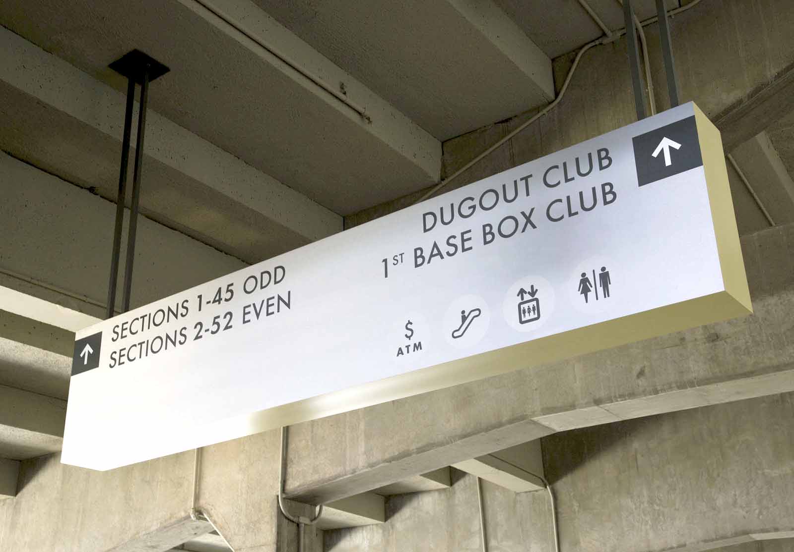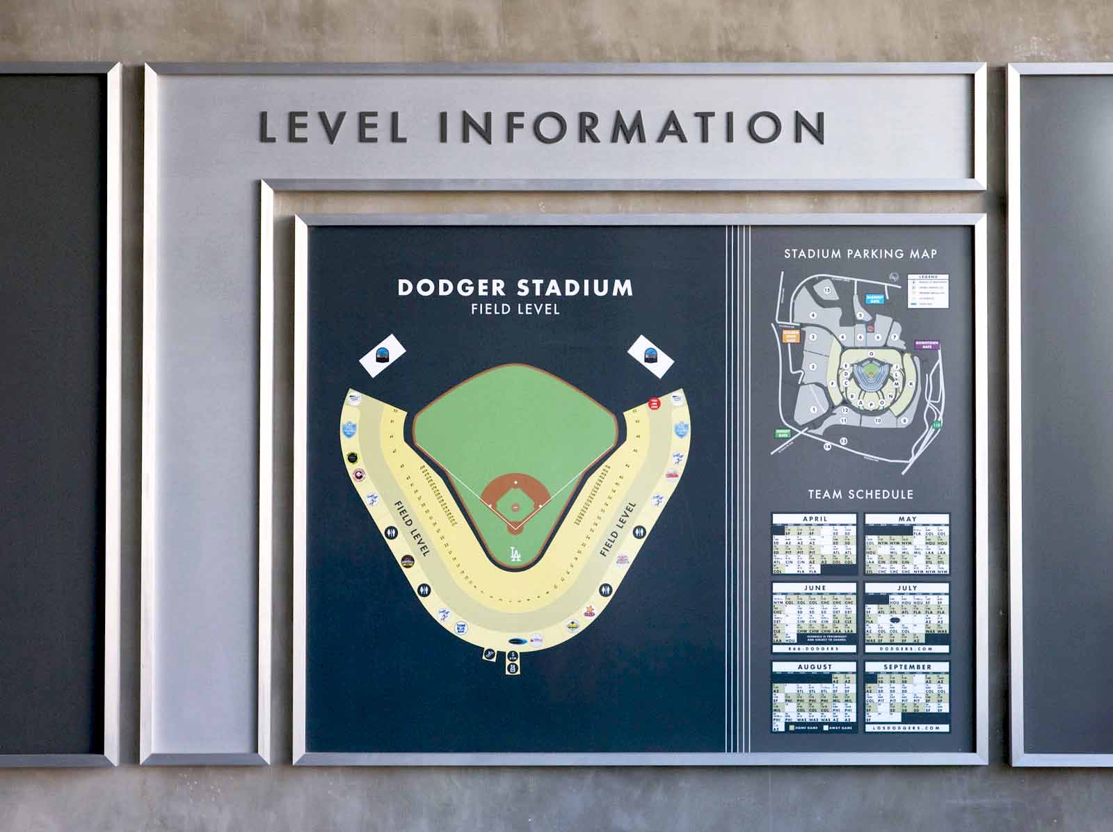 Dodger Stadium, built in the early 1960’s, overlooks the sprawling city of Los Angeles. Working closely with the architects and taking visual cues from the architecture and vintage colored seating, focusEGD created wayfinding and branding solutions that are reminiscent of the Mid-Century Modern atmosphere of the stadium. Techniques for exacting fabrication were employed to create sharp, crisp corners, which were essential to the look and feel of the signage.