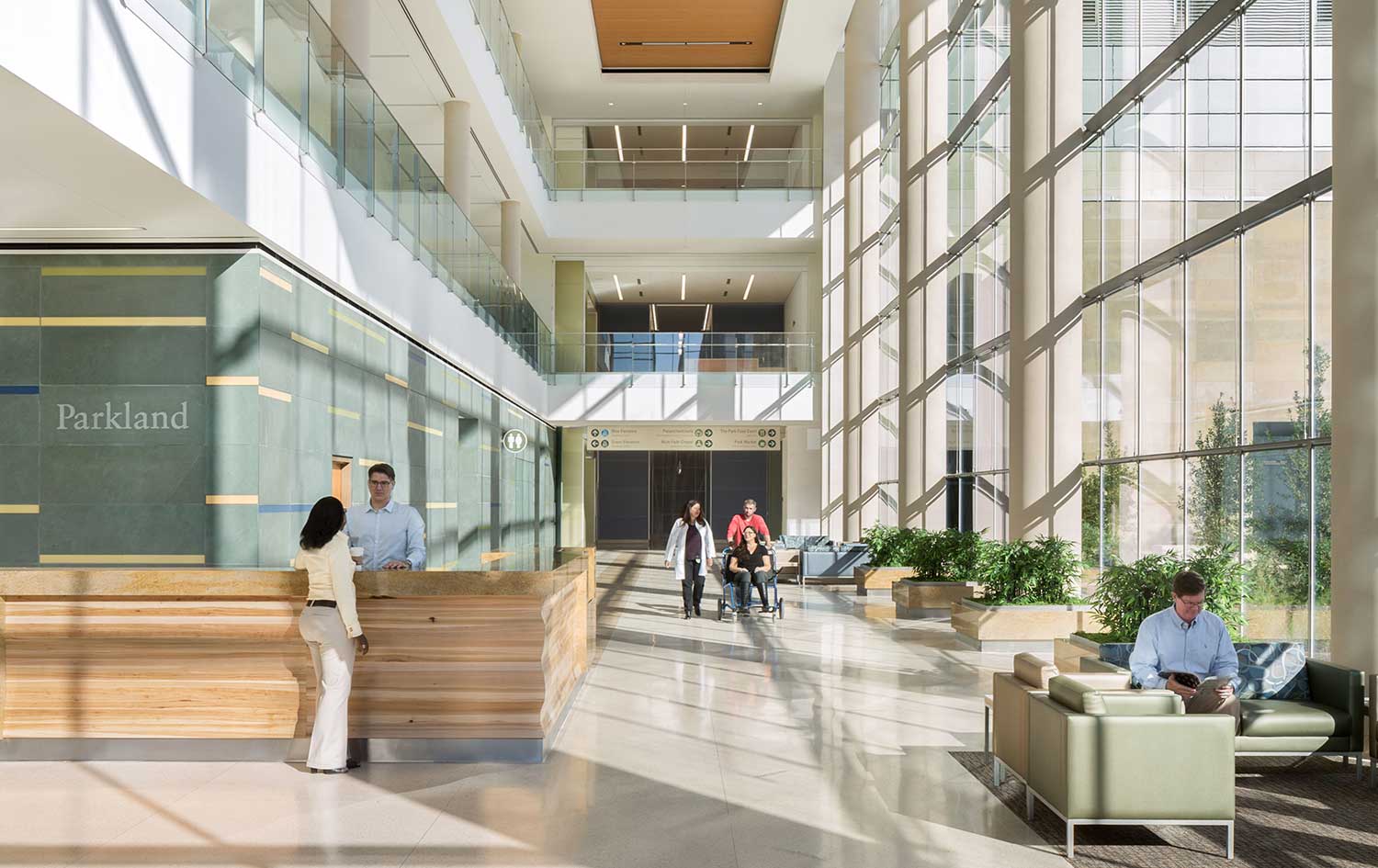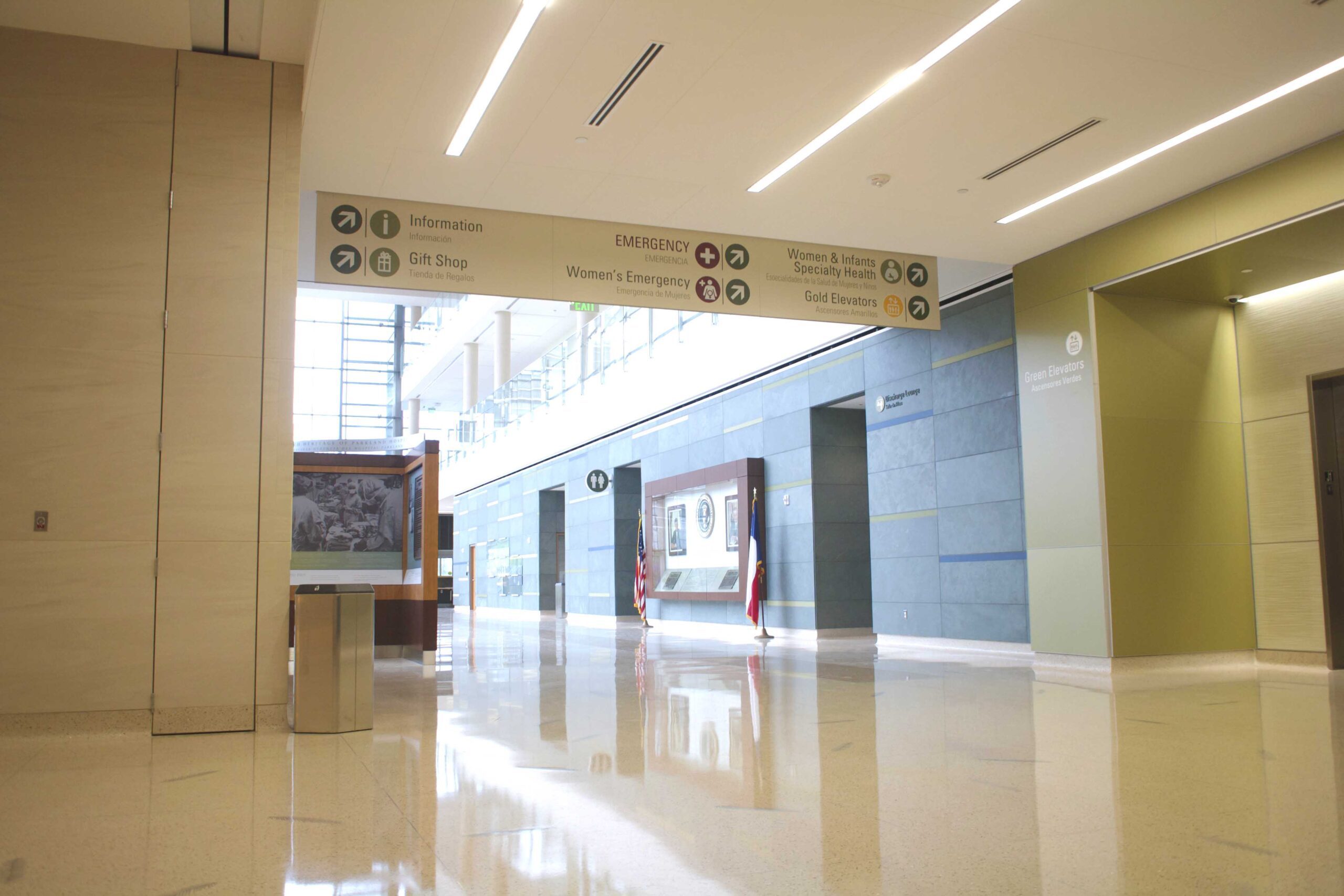 This 2.5 million square foot, 832-bed replacement hospital is designed to meet Dallas’ growing multi-lingual populations. Incorporating aspects of natural lighting, healing gardens, and nature themes, the building interior and the sign system express the “Park” in Parkland and promote a healing environment. Evidence based design principals, interactive digital directories, color-coding for vertical wayfinding, iconography, and strategic messaging enhance the communication to a diverse population.