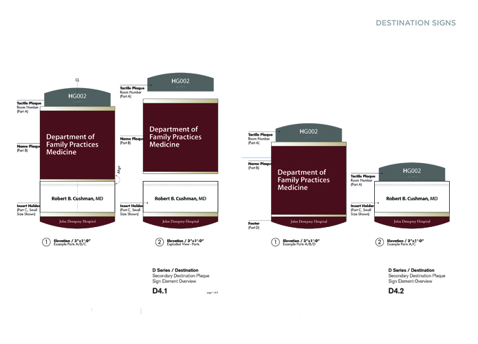 After receiving our 186-page wayfinding assessment, the University of Connecticut (UConn) Health Center implemented a significant amount of our recommendations including the development of a new signage standards manual. The challenge involved balancing the needs of academic, research and healthcare users. The result is a flexible system that’s changeable and serviceable in house. Thoughtful and resourceful solutions allowed the existing exterior signage to be renovated with headers and footers to create a new look while expressing the wayfinding districting plan recommendation.