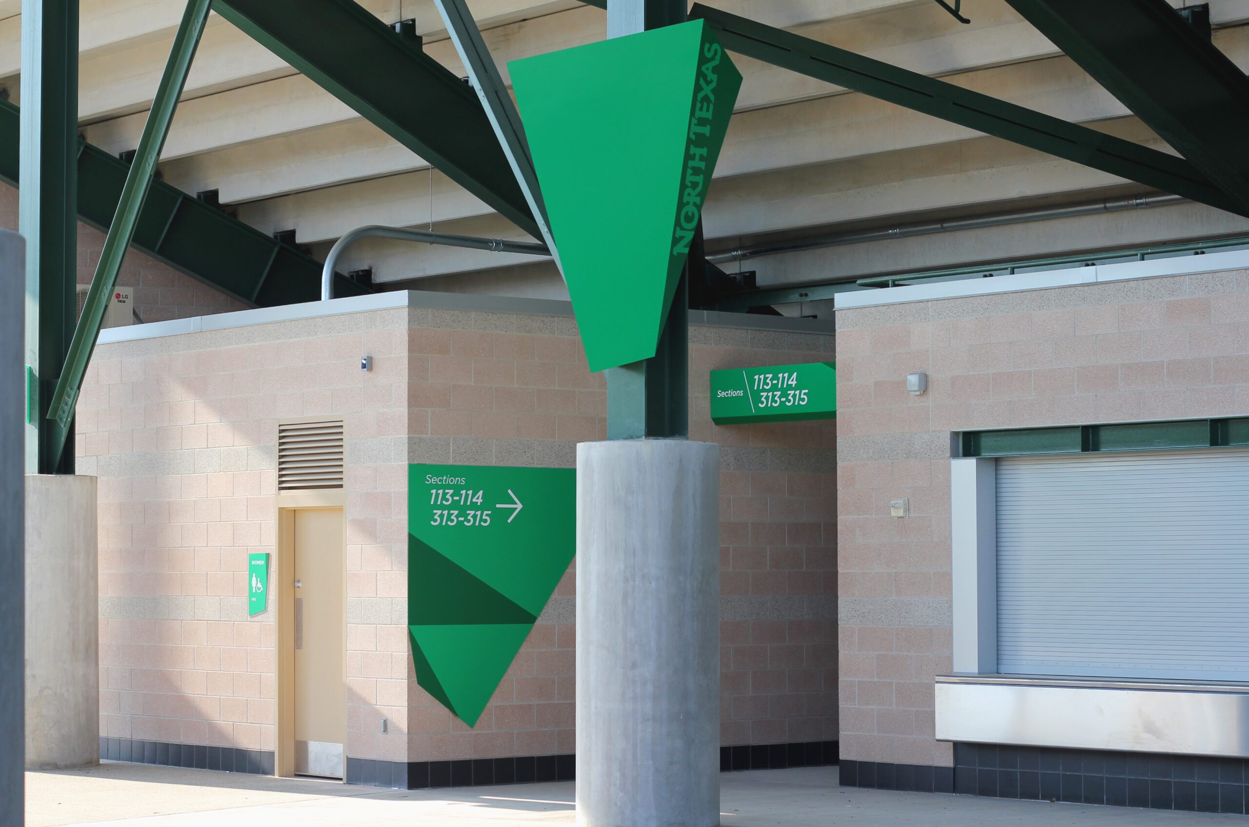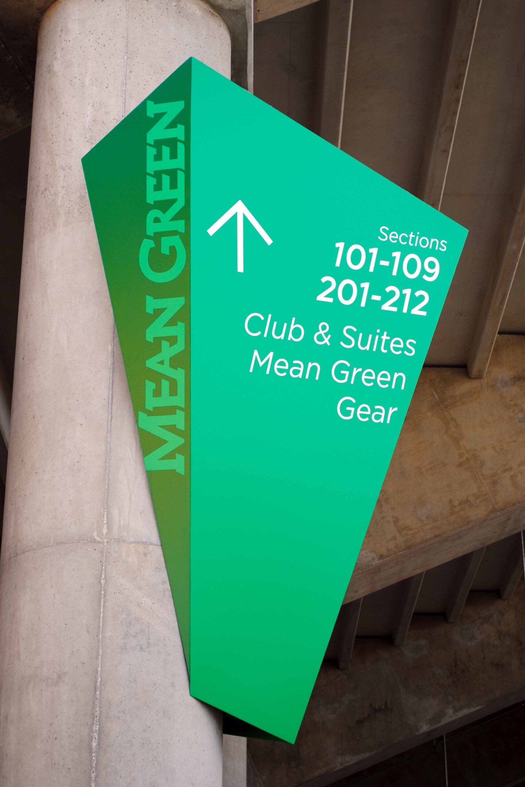 The new stadium is the first collegiate stadium to achieve LEED Platinum Certification. focusEGD’s visual strategy for the unique and high-caliber project drew from professional sports graphics. Large-scale, color rich, and exclusively shaped graphic elements tell the story of the eagle concept. Sharp angles and “Mean Green” colors contrast with the earth tones of the building adding dynamism, high-visibility, and emphasize the fan’s energetic buzz.