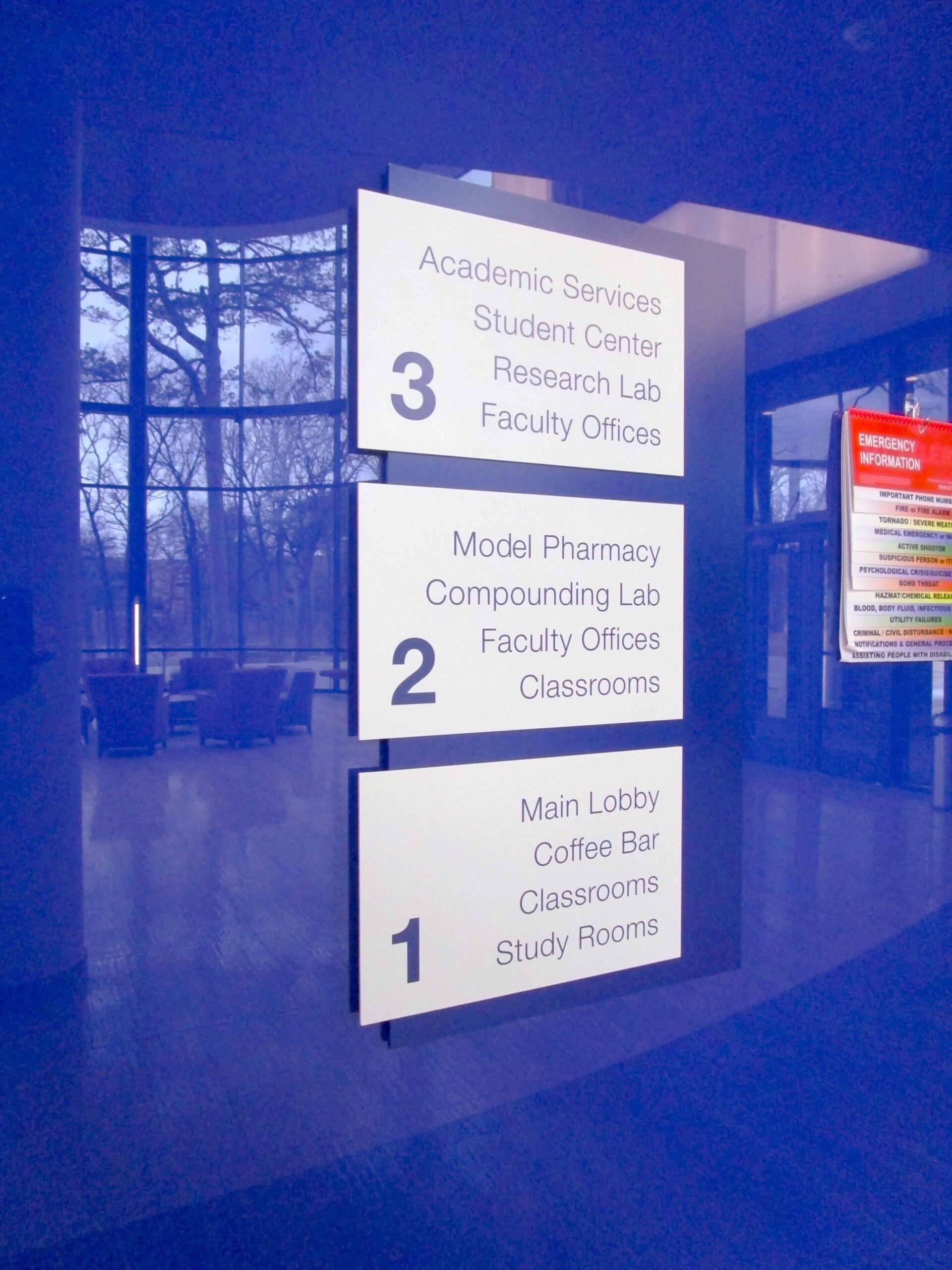 Featuring three levels of learning spaces including a mock retail pharmacy, practical lab, student center and café, the Ben and Maytee College of Pharmacy continues a long tradition of pharmacy education at the University of Texas. The signage for this new facility compliments the modern finishes, university brand and existing signage design standards found around campus. Throughout the facility focusEGD designed plaques featuring the story of the namesakes and donors to the College.
