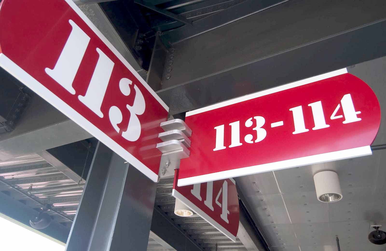 Inspired by the industrial architecture and era of the neighborhood, the signs took on a distinctively period aesthetic with a nod to neon and stylized shapes. The goal was to create a playful sign system that functions for wayfinding but adds to the baseball fan’s experience. Concessions, suites, section identity, and amenities each got a custom design just to provide a surprise at every turn.